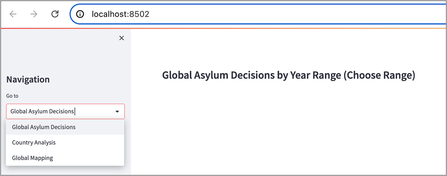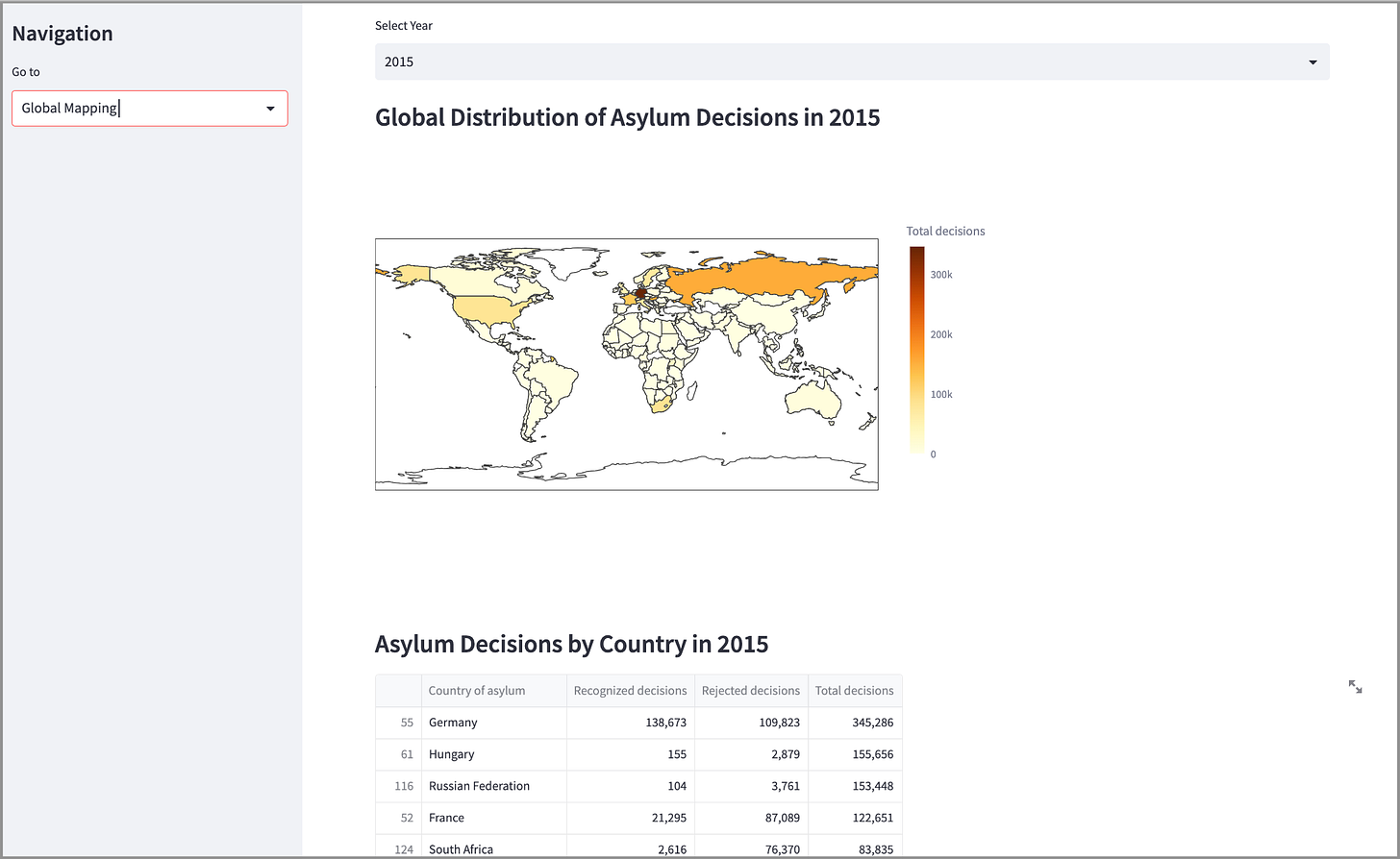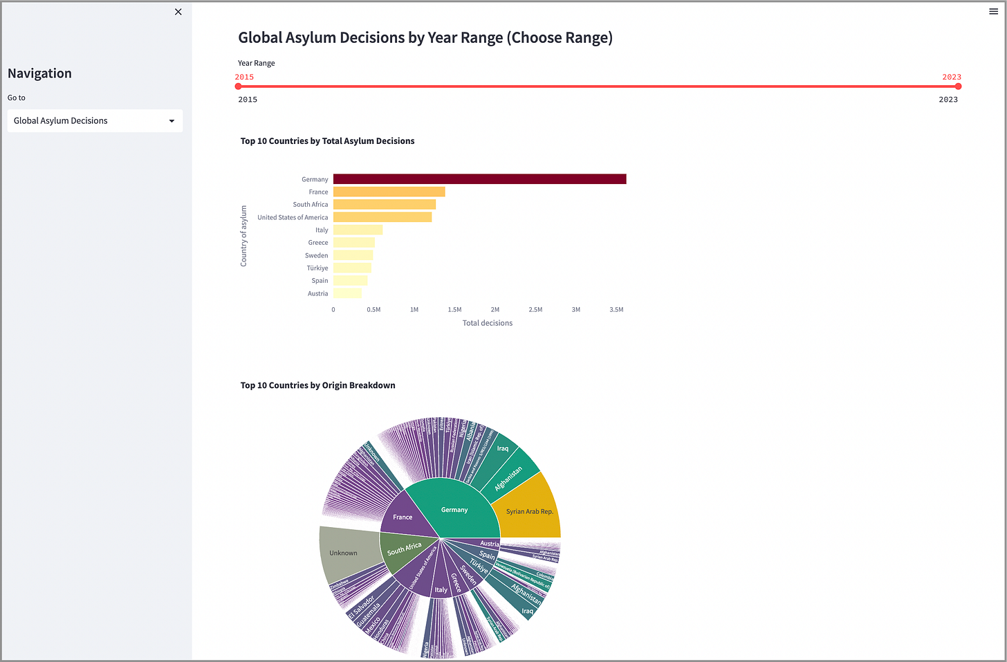 This project showcases a 3-page Streamlit application representing global UNHCR asylum data over a range of years.